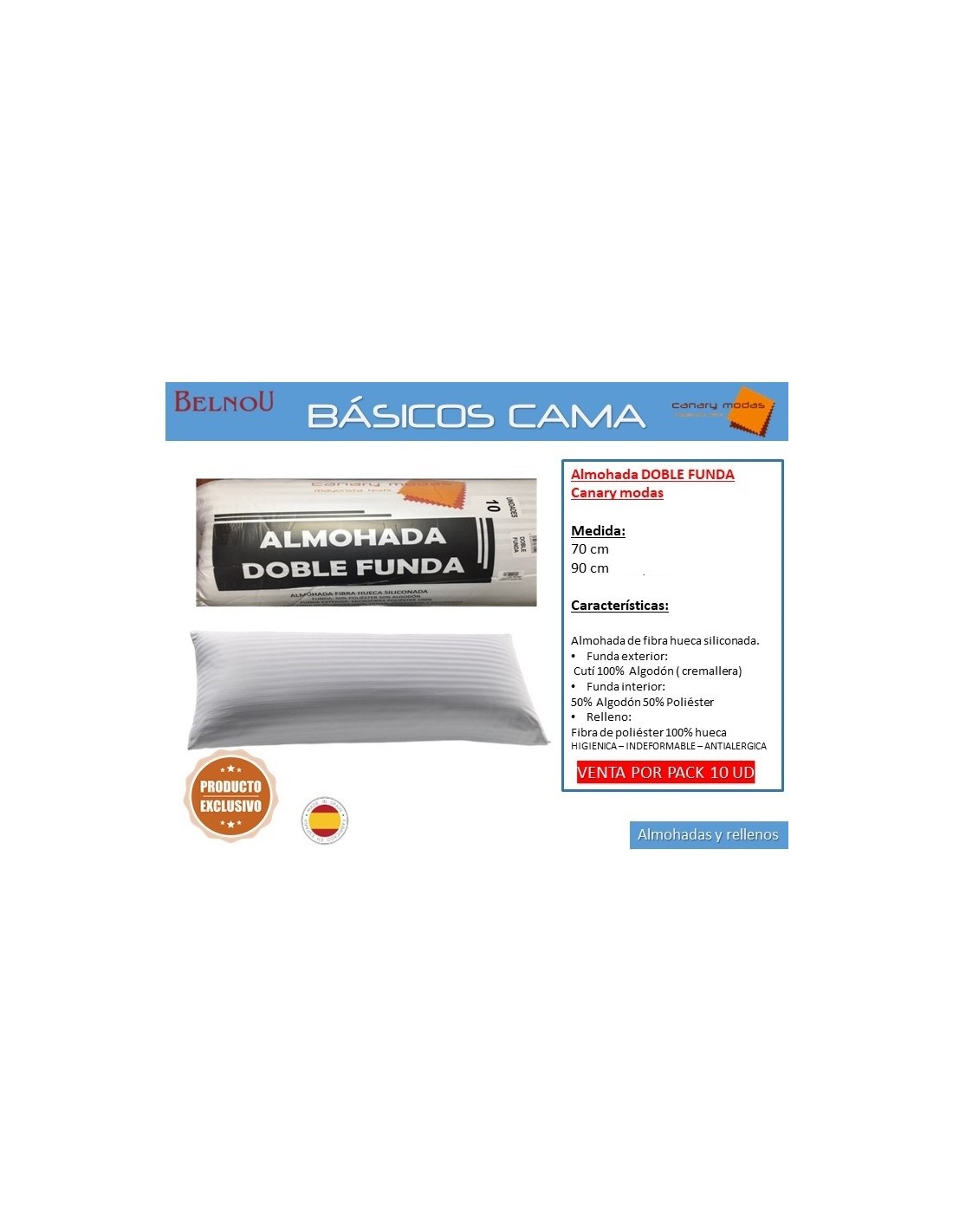 Almohada de fibra hueca siliconada. Funda 50% Poliester 50% Algodón. Relleno fibra de poliester hueca, higienica , indeformable y antialergica.