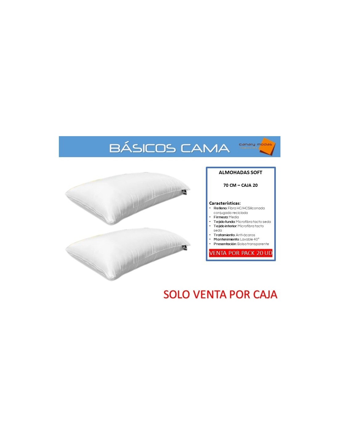 Almohada de fibra hueca siliconada. Funda 50% Poliester 50% Algodón. Relleno fibra de poliester hueca, higienica , indeformable y antialergica.