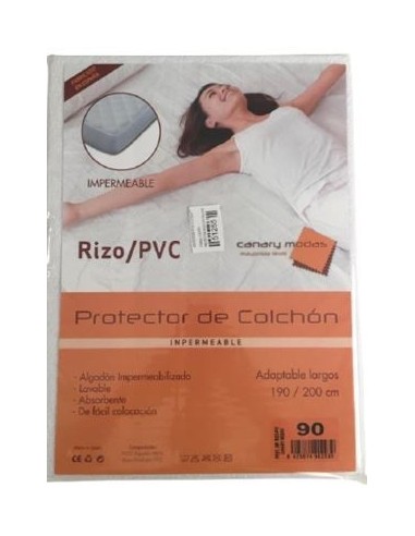 Protector de rizo impermeable, recomendado para personas con movilidad reducida, pacientes con incontinencia o sudoracion excesiva. El protector se coloca encima del colchon para protegerlo y tambien para facilitar la movilidad del usuario. Composicion con base 100% algodon, con base de poliuretano.