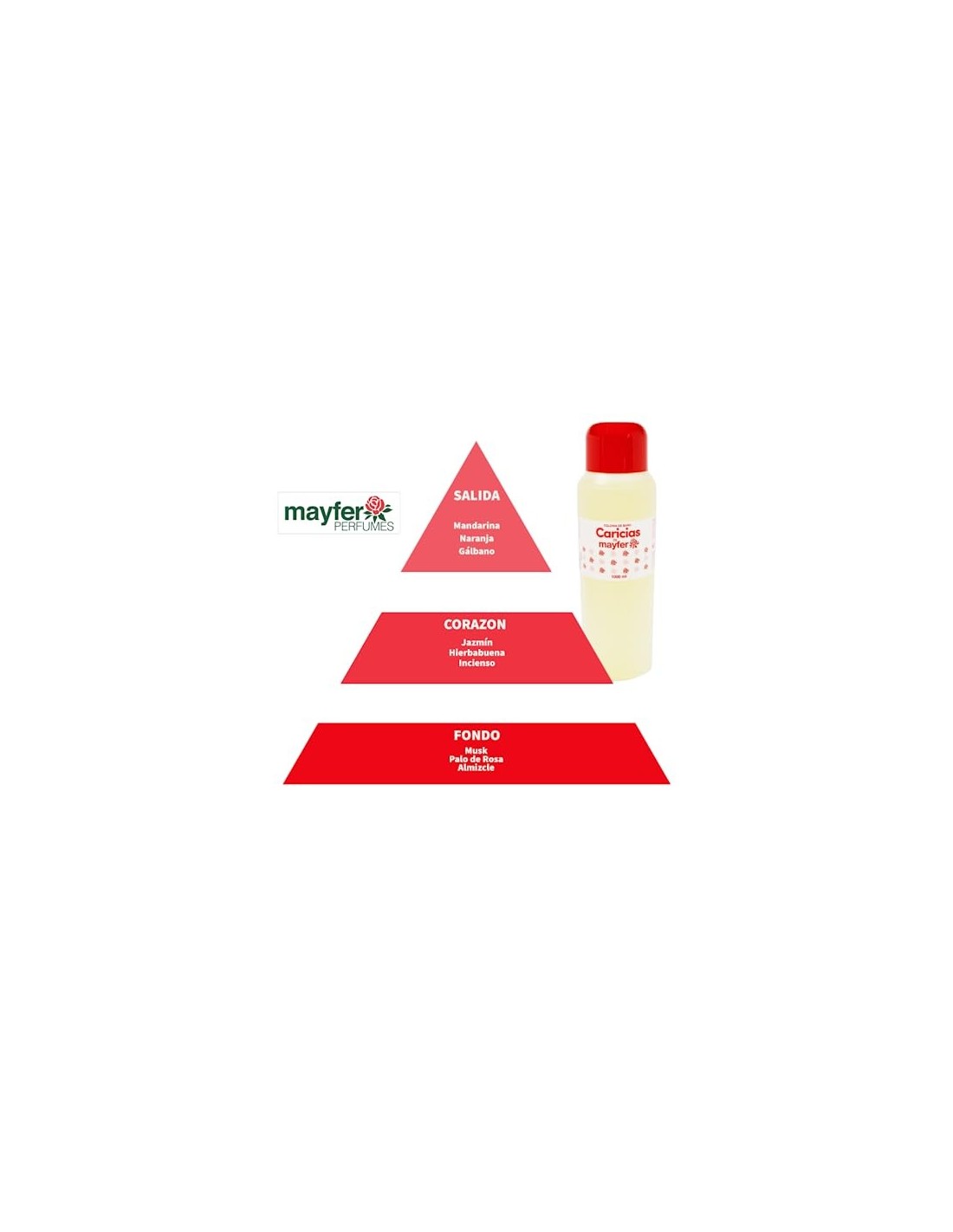 Caricias es una colonia chispeante, para toda la familia, con una fragancia muy cítrica y a la vez exotica por sus notas especiadas.