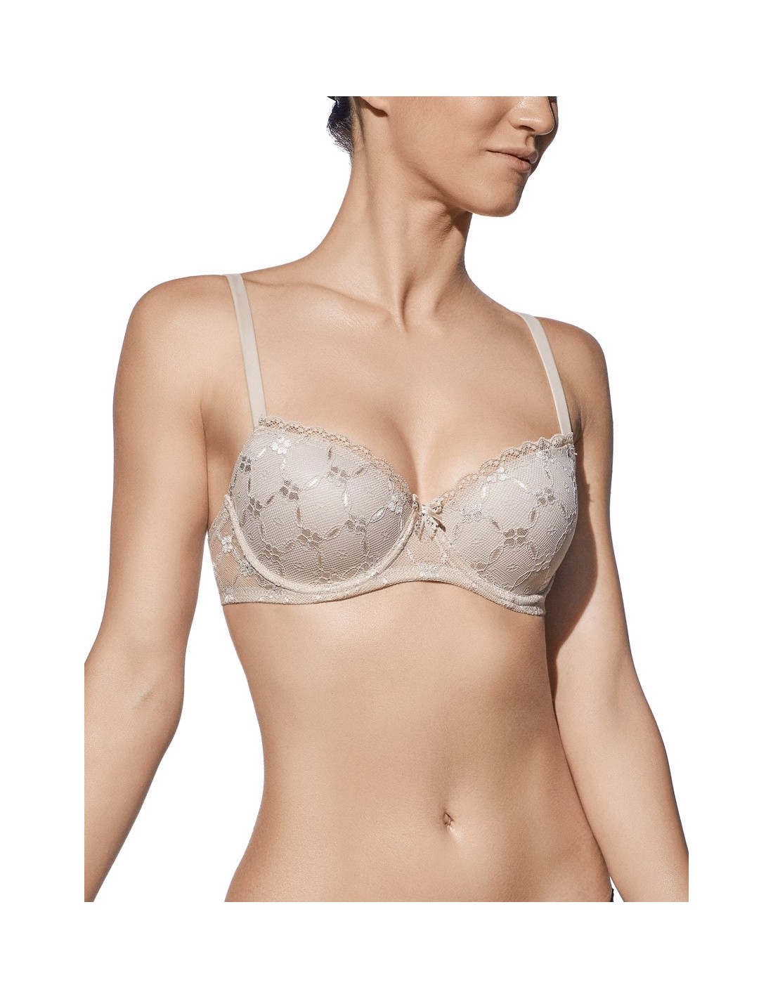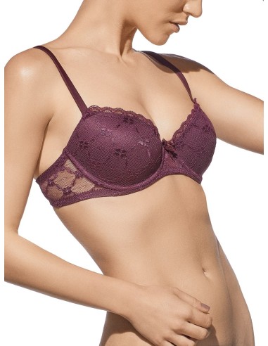 Sujetador con aros y copa de relleno,con tirantes. Elegante tejido fino. Tirante ancho con regulador. Cierre de 4 posiciones.