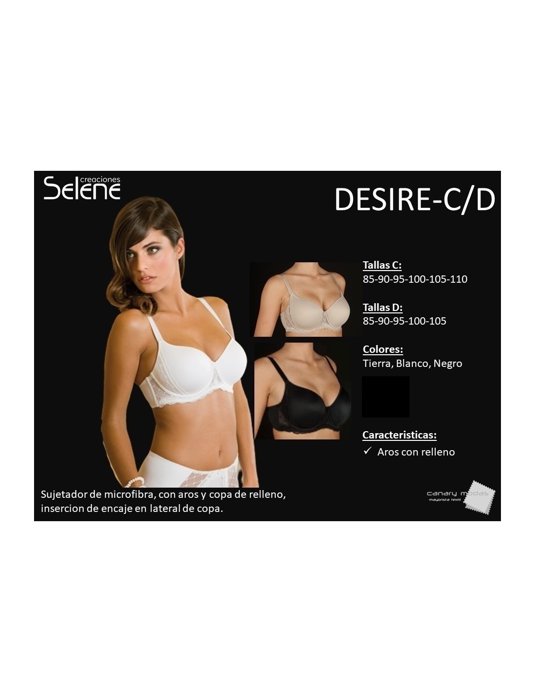 Sujetador de microfibra , con aros y copa de relleno, insercion de encaje en lateral de copa.