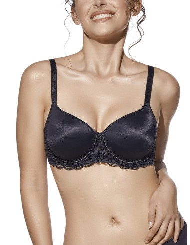 Sujetador básico de microfibra con copa de relleno y aros. Elegante franja de raso en escote. Espadillas de fino encaje.