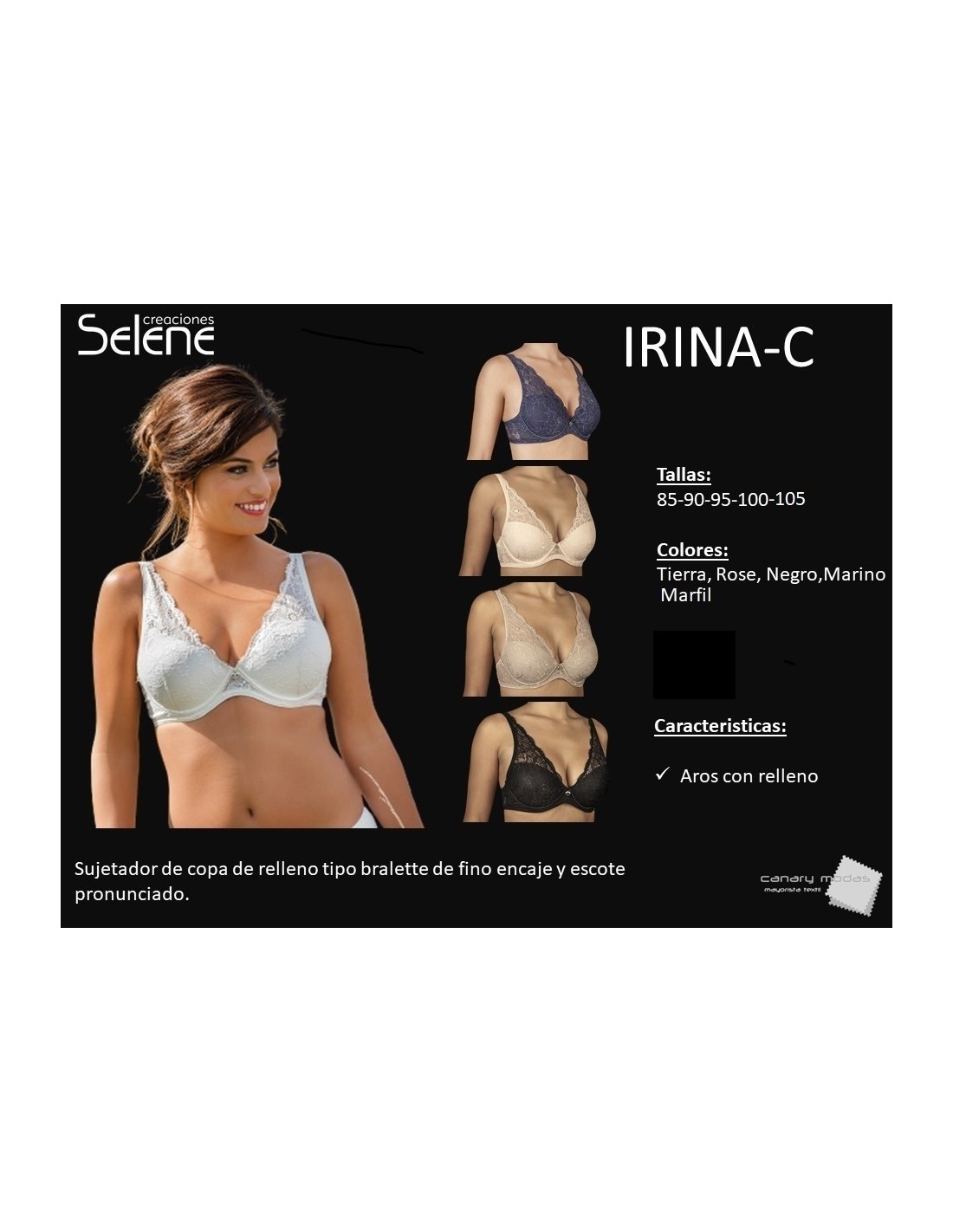 Sujetador con aros y copa de relleno,con tirantes. Elegante tejido fino. Tirante ancho con regulador. Cierre de 4 posiciones.