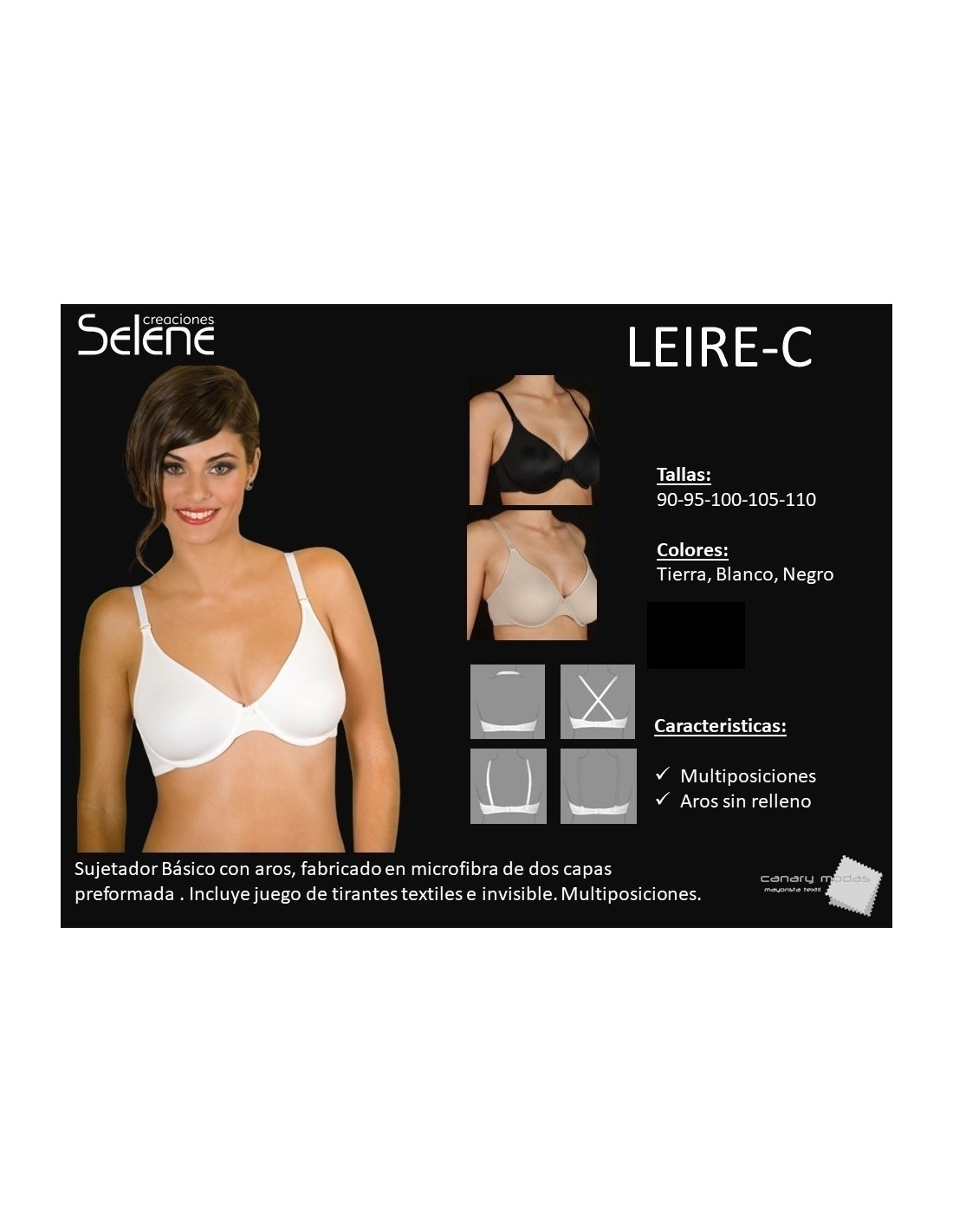 Sujetador con aros y copa de relleno, con tirantes. Elengante encaje. Tirante ancho con regulador. Cierre de 4 posiciones.