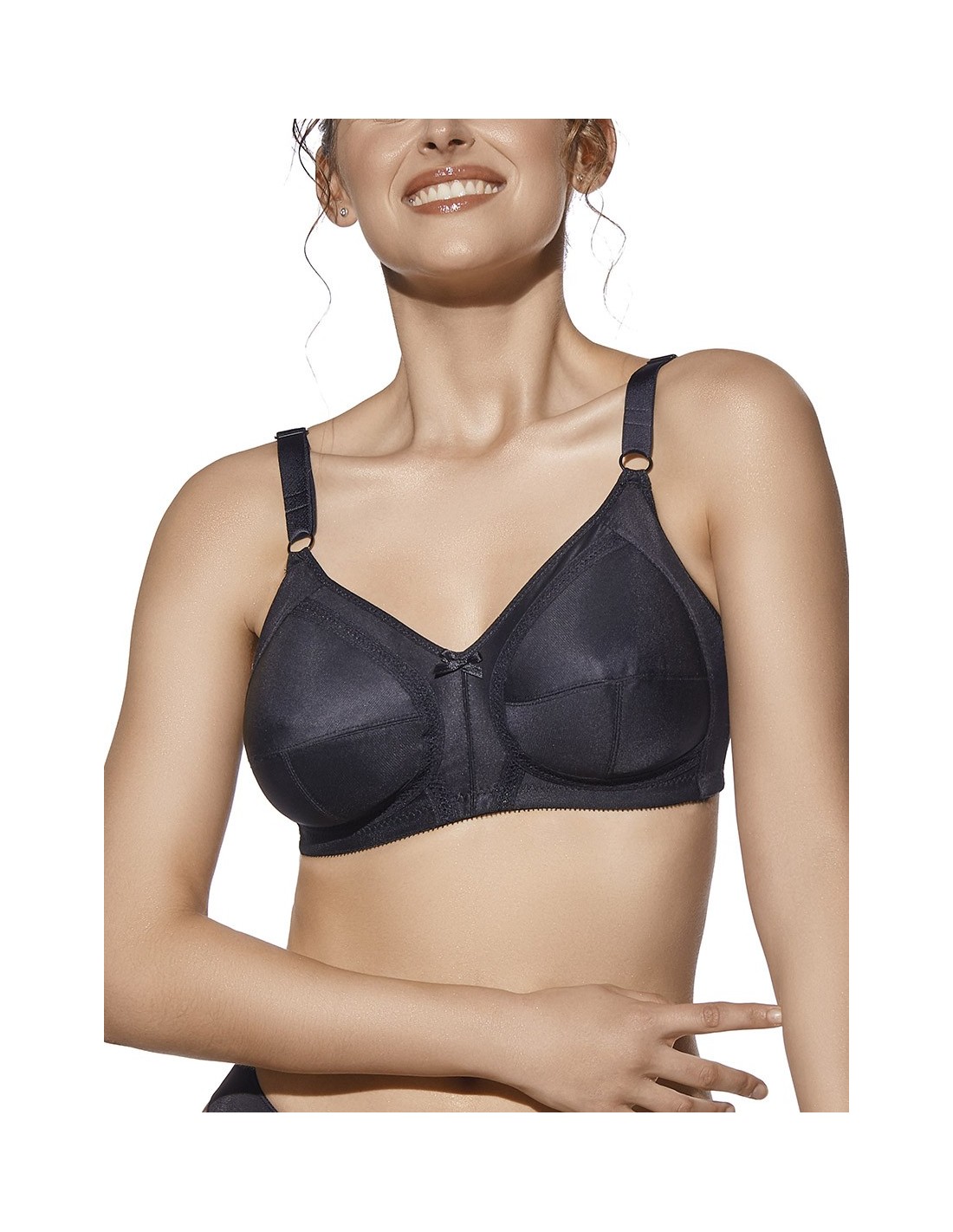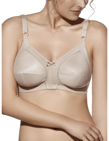 Sujetador con aros y copa de relleno,con tirantes. Elegante tejido fino. Tirante ancho con regulador. Cierre de 4 posiciones.