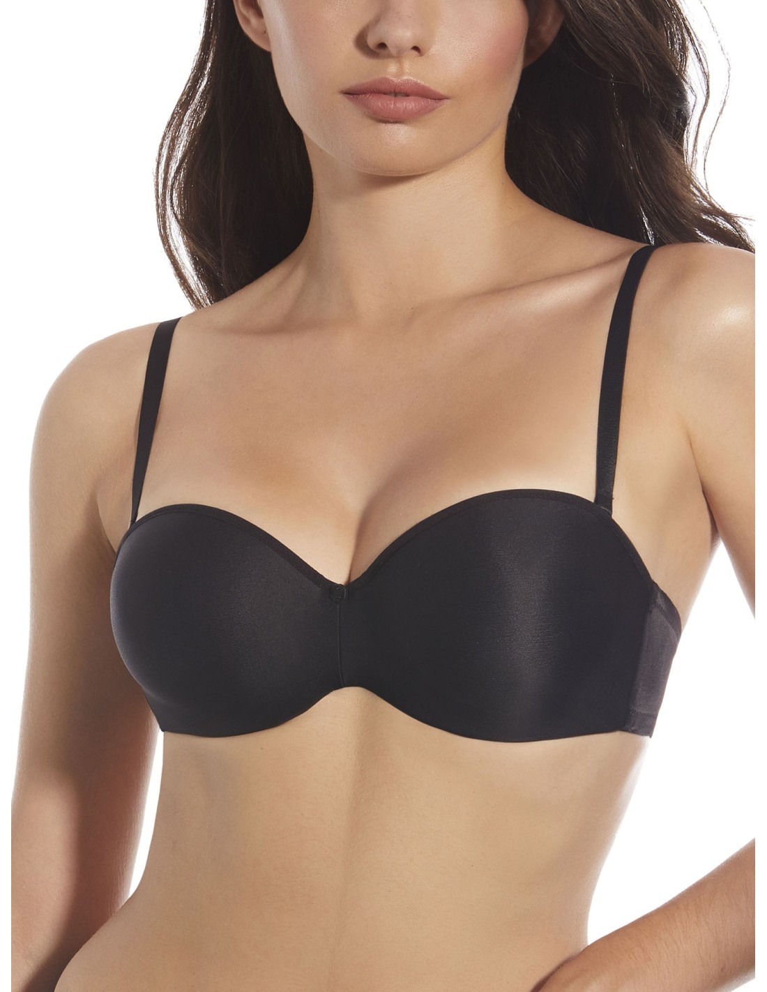 Sujetador básico con aros, fabricado en microfibra de dos capas preformada. Incluye juego de tirantes textilex e invisible.Multiposicion.