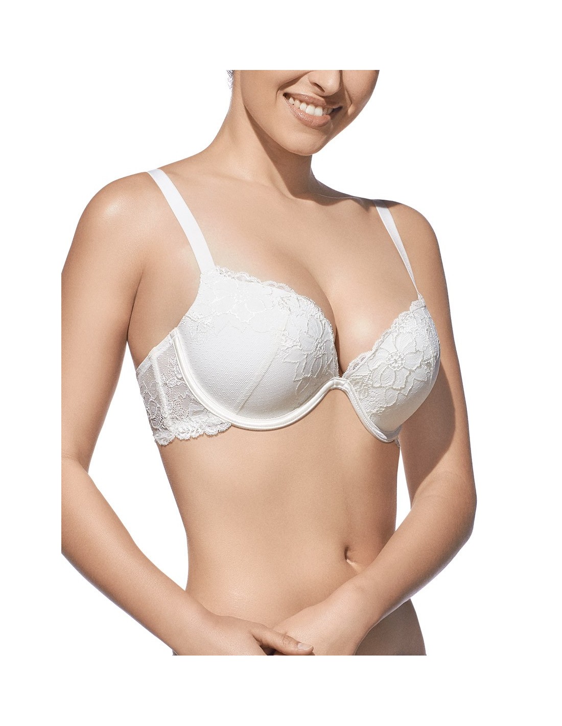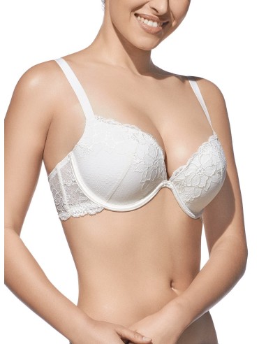Sujetador elegante con aros y copa de relleno. Fino tejido bordado sobre tul.