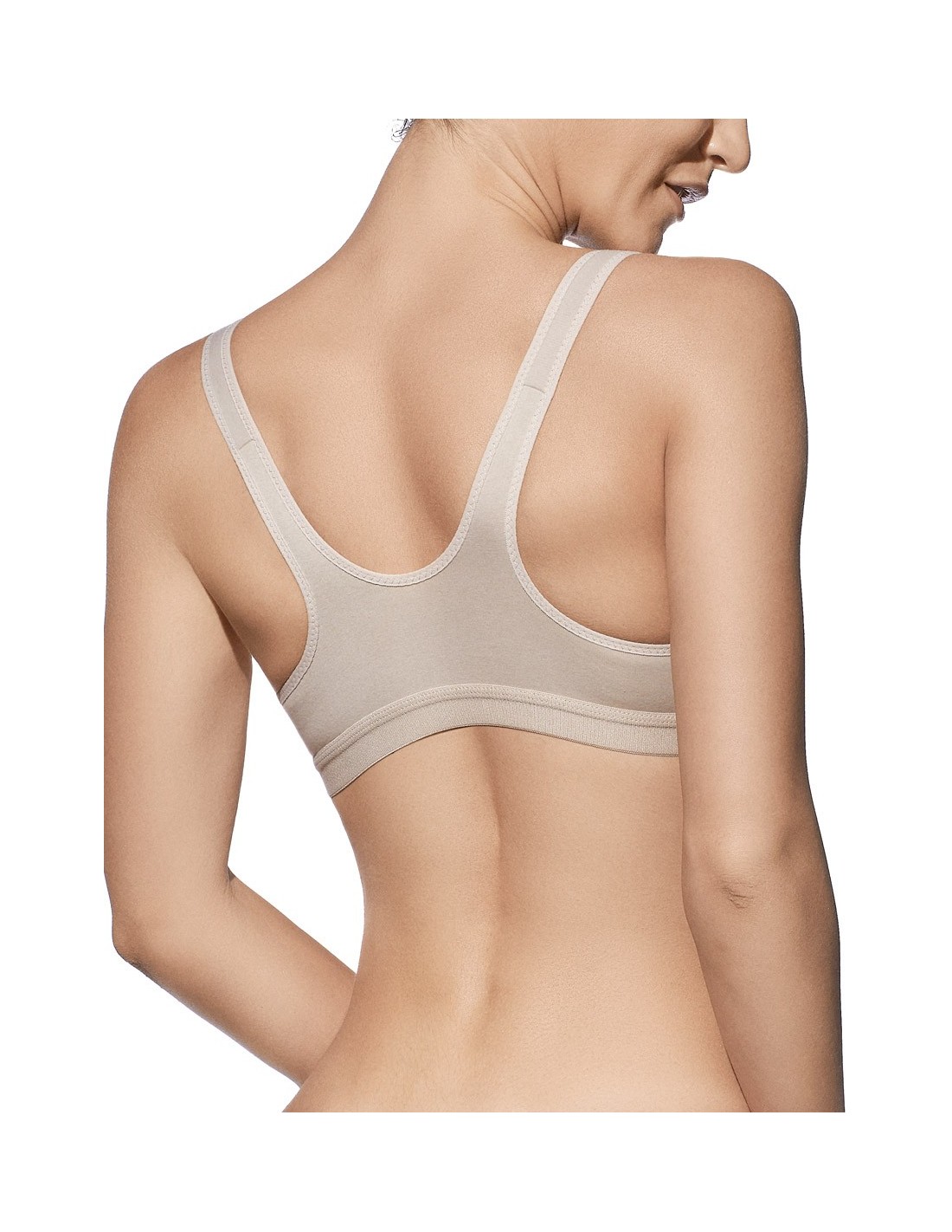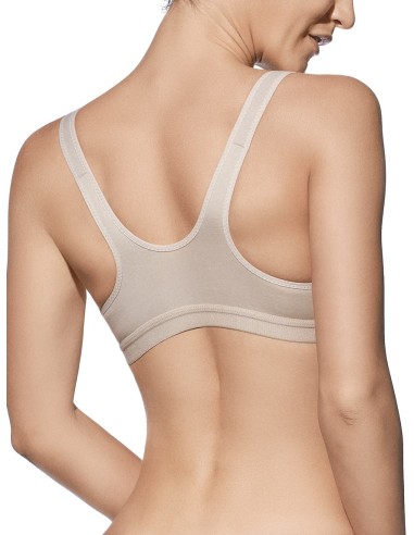 Sujetador cómodo sin aros de algodón 100% organico, su refuerzo lateral interior en la copa proporciona una mayor sujecion a la vez que realza el busto.