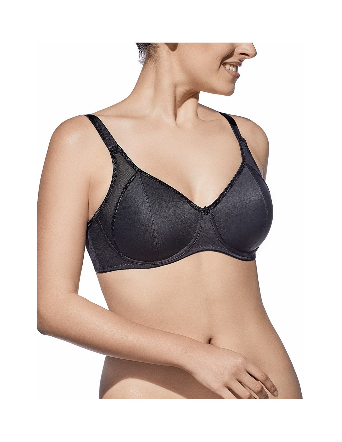Sujetador con aros y copa de relleno,con tirantes. Elegante tejido fino. Tirante ancho con regulador. Cierre de 4 posiciones.