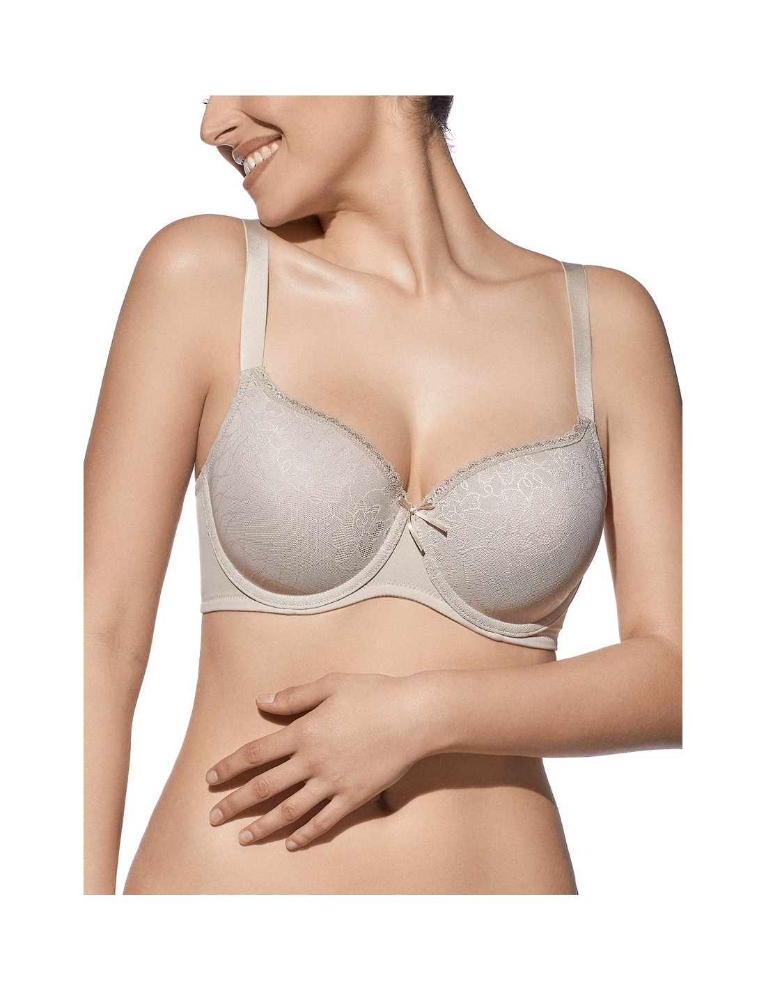 Sujetador elegante con aros y copa de relleno. Espadillas en encaje bicolor.